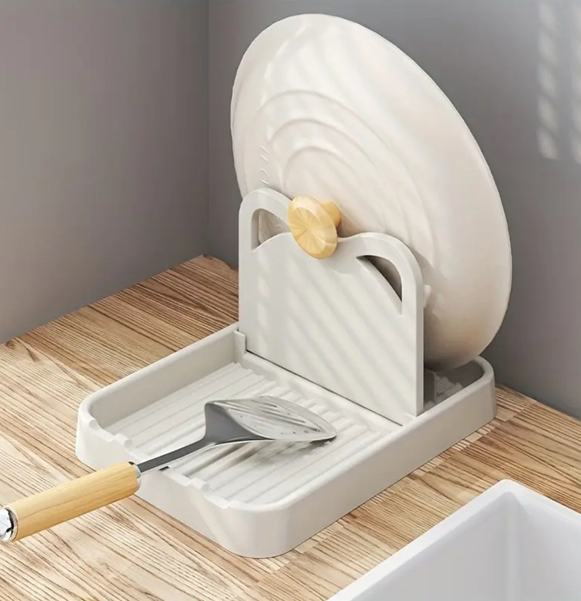 Keep your kitchen tidy and stylish with this 1pc Creative Cat Ear Pot Lid Rack! Perfect for organizing pot lids, spatulas, cutting boards, and utensils, this multi-functional countertop holder is both practical and adorable.