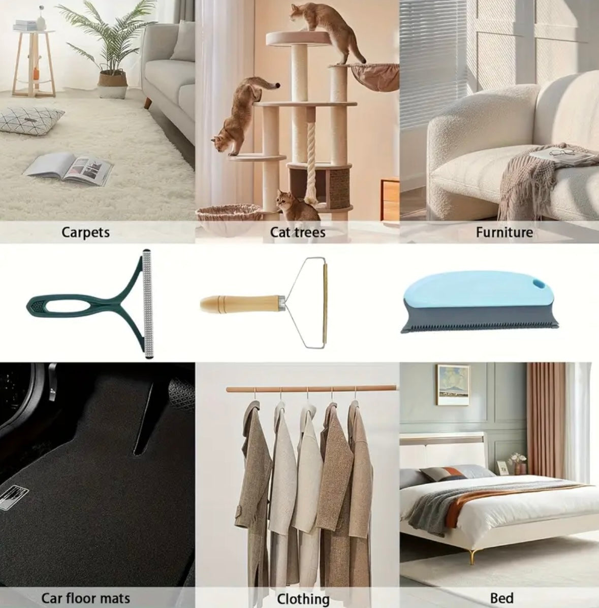 Keep your home clean and fur-free with this 5-piece Pet Hair Remover Set. Designed for dogs and cats, this reusable tool efficiently removes pet hair from furniture, carpets, rugs, blankets, and clothing. Lightweight and portable, it’s perfect for daily use at home or on the go. Say goodbye to stubborn pet hair and lint with this easy-to-use, durable hair removal solution.