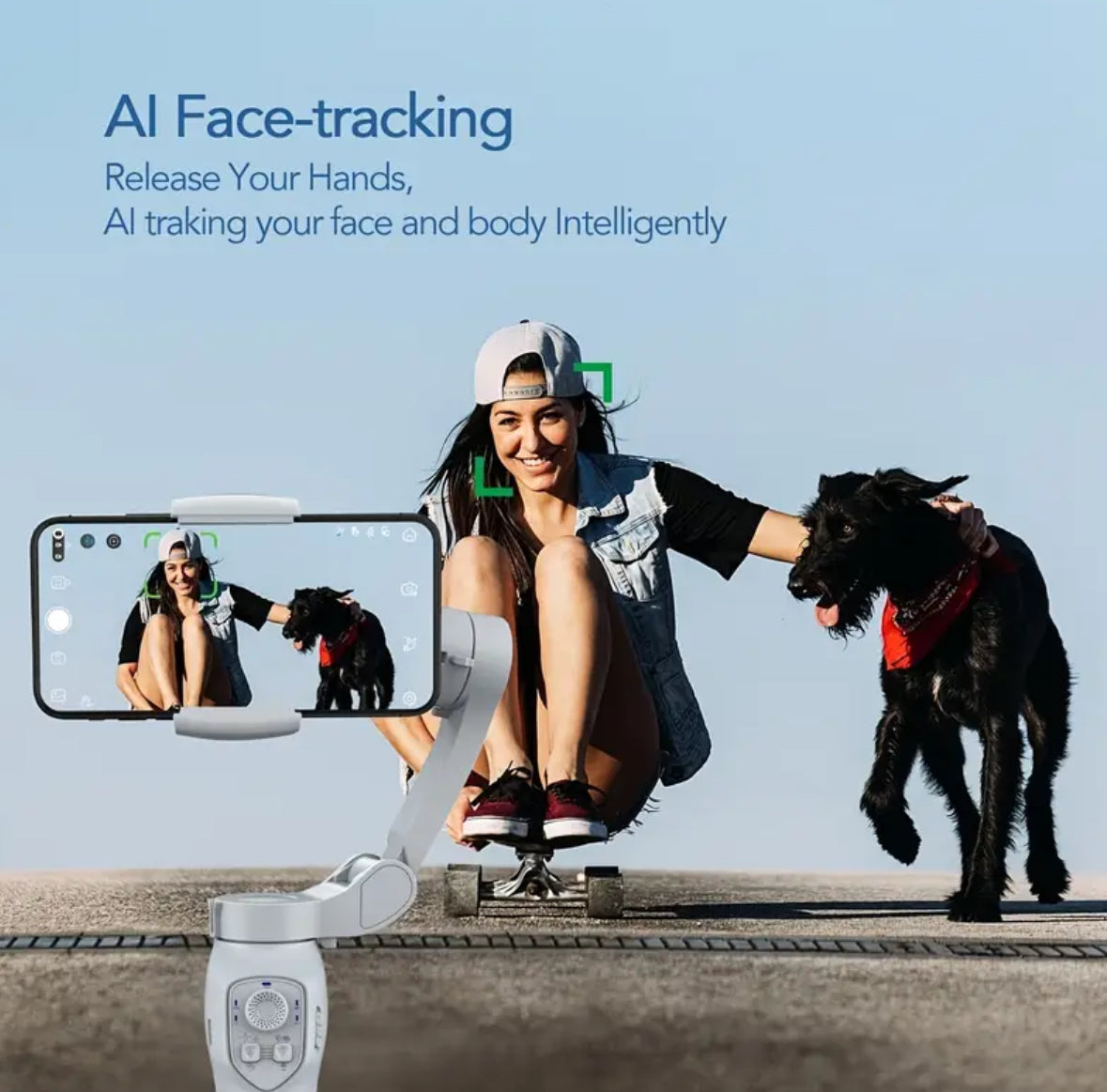 Handheld 3-Axis Gimbal Stabilizer – Foldable, USB Rechargeable, Smart Gesture, Ideal for Vlogging & Mobile Photography
